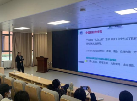 讲座伊始,陈艳平教授从语用学的由来与发展、语用学的研究现状、语用学的研究热点与发展趋势、韩国语语用学研究实践等四个方面依次为大家进行了详细介绍。她提到了语用学发展的几个重大时间节点,同时从研究现状的角度出发引出了语用学相关研究领域、研究热点以及研究前沿三个主要内容;重点分析了语用学多学科、多领域、多维度的发展趋势,并结合自身科研经历与课题指导经验,生动形象地举例论证了语用学的极强实用性。