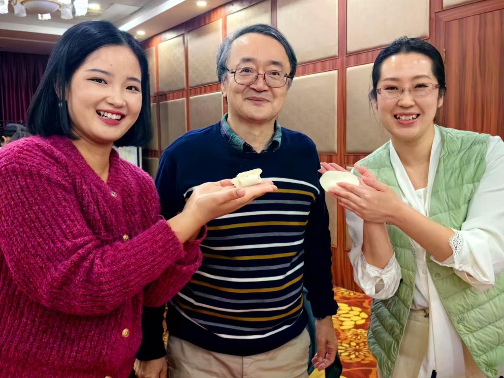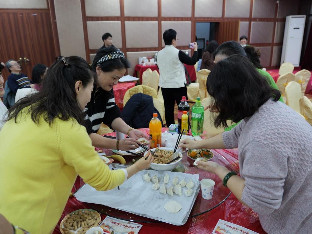 游戏环节过后,全院教师围坐在一起,共同动手包饺子,场面热闹而温馨。大家一边包饺子,一边聊天,分享着彼此的故事和新年愿望。当一盘盘热气腾腾的饺子端上桌时,大家举杯同庆,一起吃饺子,共同迎接新年的到来。