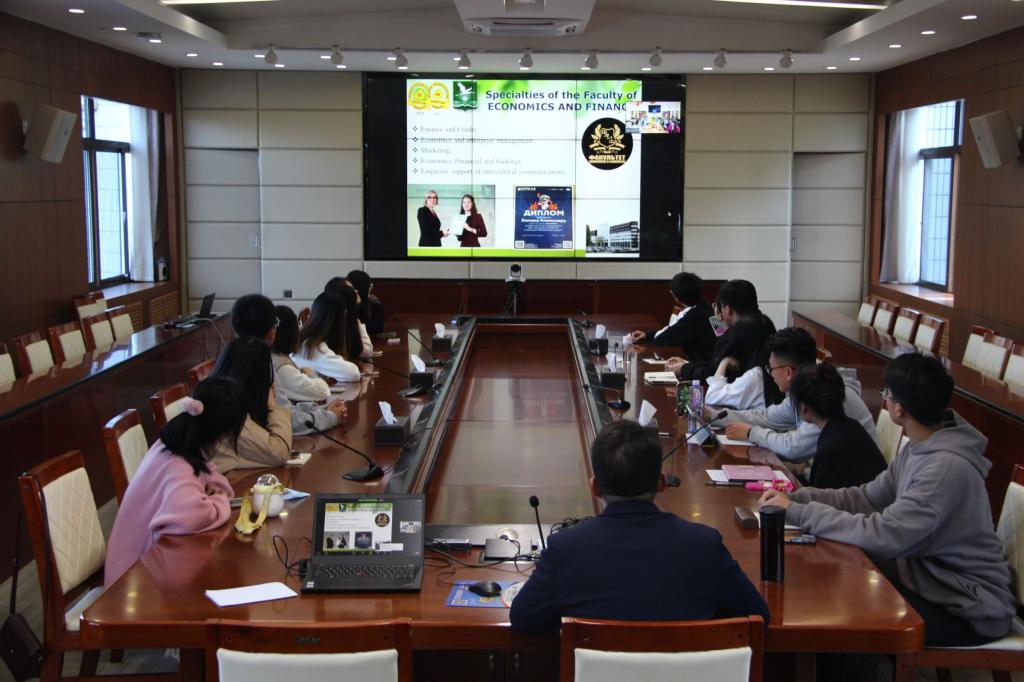 整体情况做介绍,并向波列斯克国立大学的同学们介绍了中国的文化历史、民族风俗习惯、中国传统节日以及四大发明等各类标志性文化。波列斯克国立大学学生代表则重点介绍了波列斯克国立大学的人文风情和文化历史渊源,以及对白俄罗斯的文化发展历程、各地区文化风俗概览以及各类有趣的文化节等进行了分享.