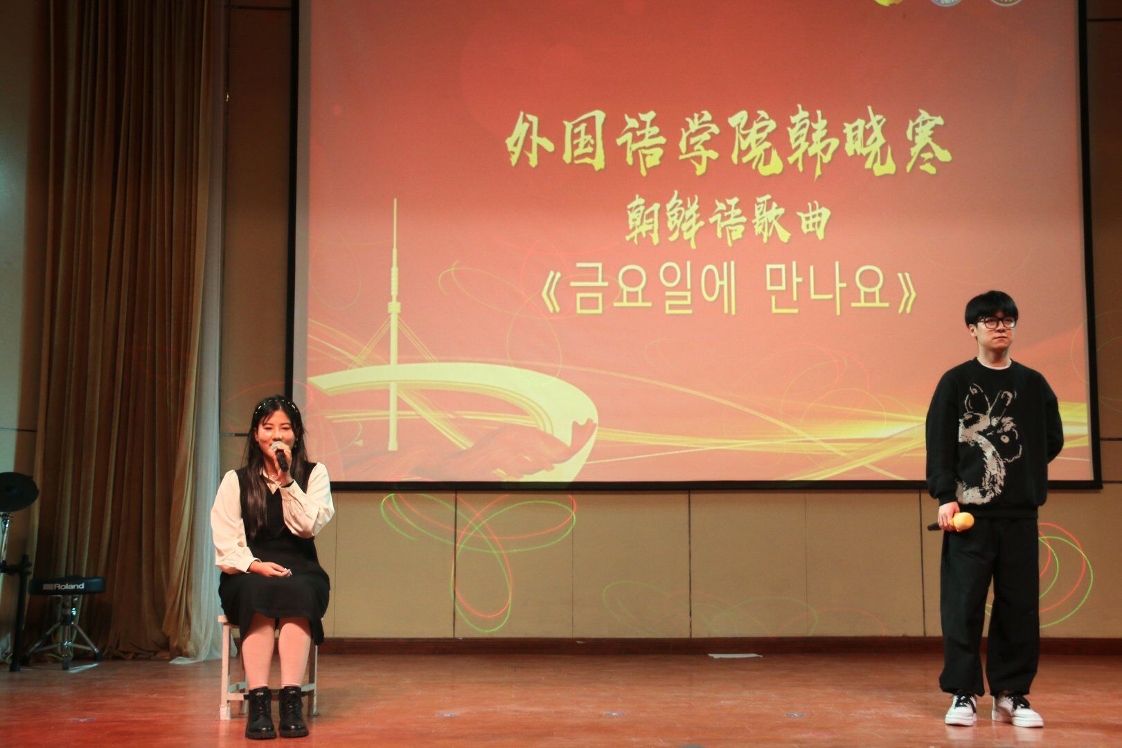 11月27日,由91麻豆 党委学生工作部(处)、校团委共同主办,91麻豆 承办的第七届外语文化节闭幕式暨第十四届“花开孟冬”外文歌曲大赛决赛在致道厅举行。党委学生工作部(处)相关负责人、91麻豆 党政领导班子全体成员、学院教师代表、学生代表参加。