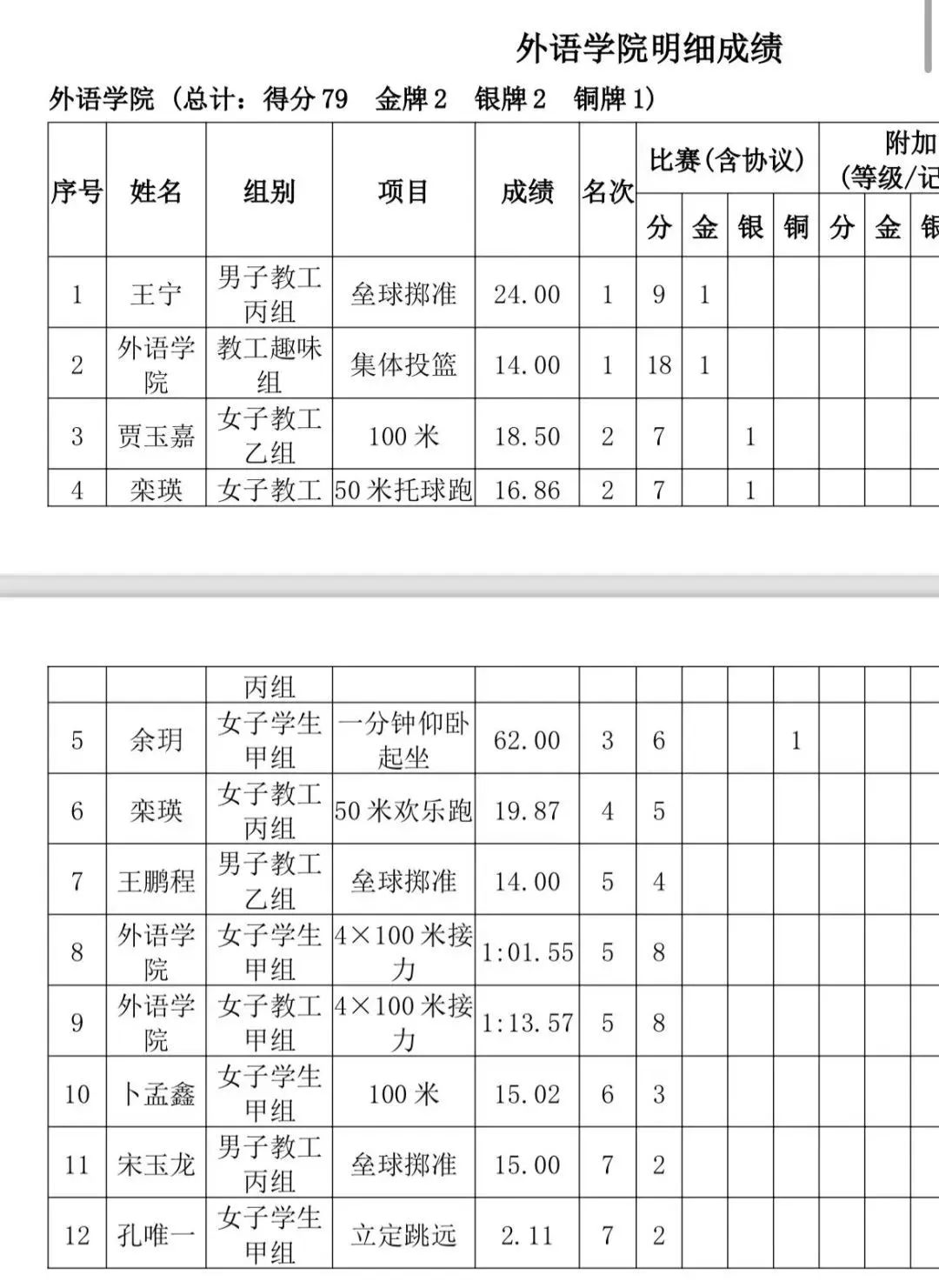 外院也取得了不错的成绩