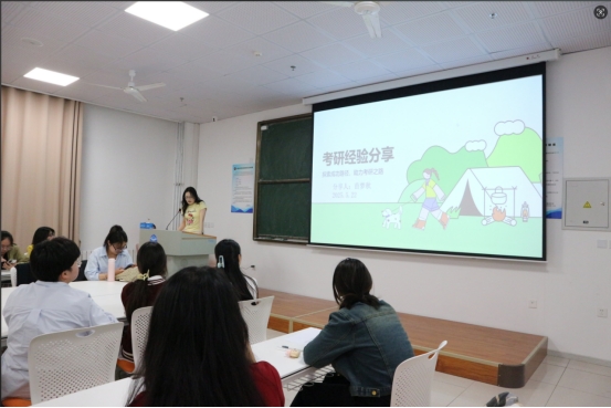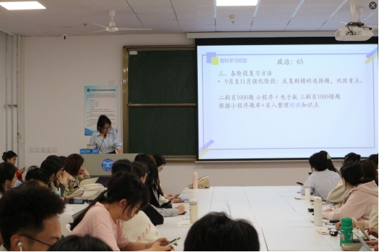 随后,苗梦秋同学聚焦调剂与心态调整,通备考过分享自己的考试经验分析了调剂策略与备考中可能遇到的问题,建议大家找到适合自己的学习方法,强调过程中效率大于时间。最后她鼓励同学们保持自信,不要内耗,灵活应对考试变化。